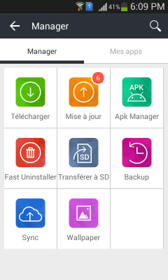 La partie la plus intéressante de 1Mobile Market est son gestionnaire. Le gestionnaire App a trois fonctions: mise à jour, sauvegarde et synchronisation.